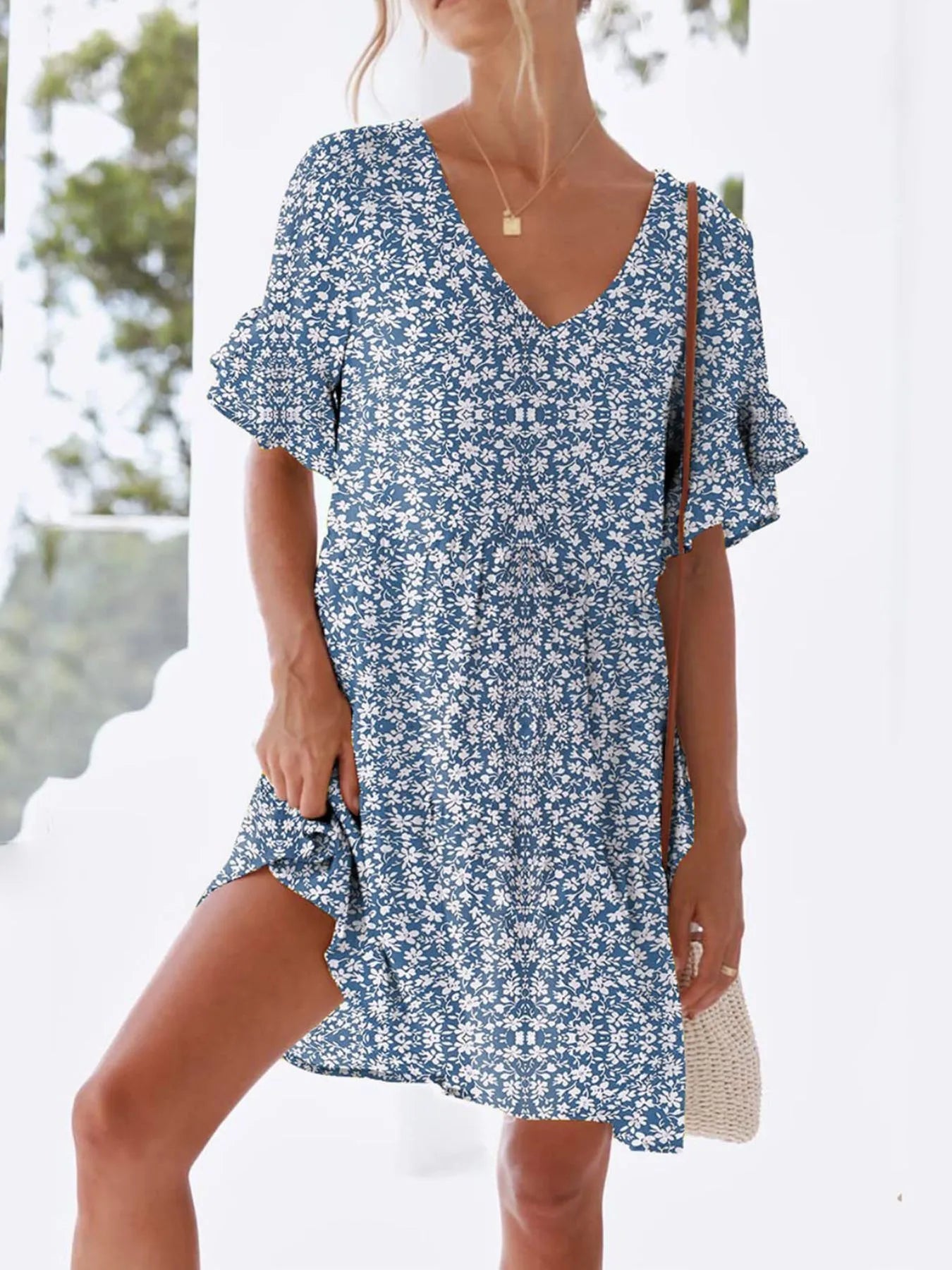 Paisley Floral V Neck Short Sleeve Mini Dress