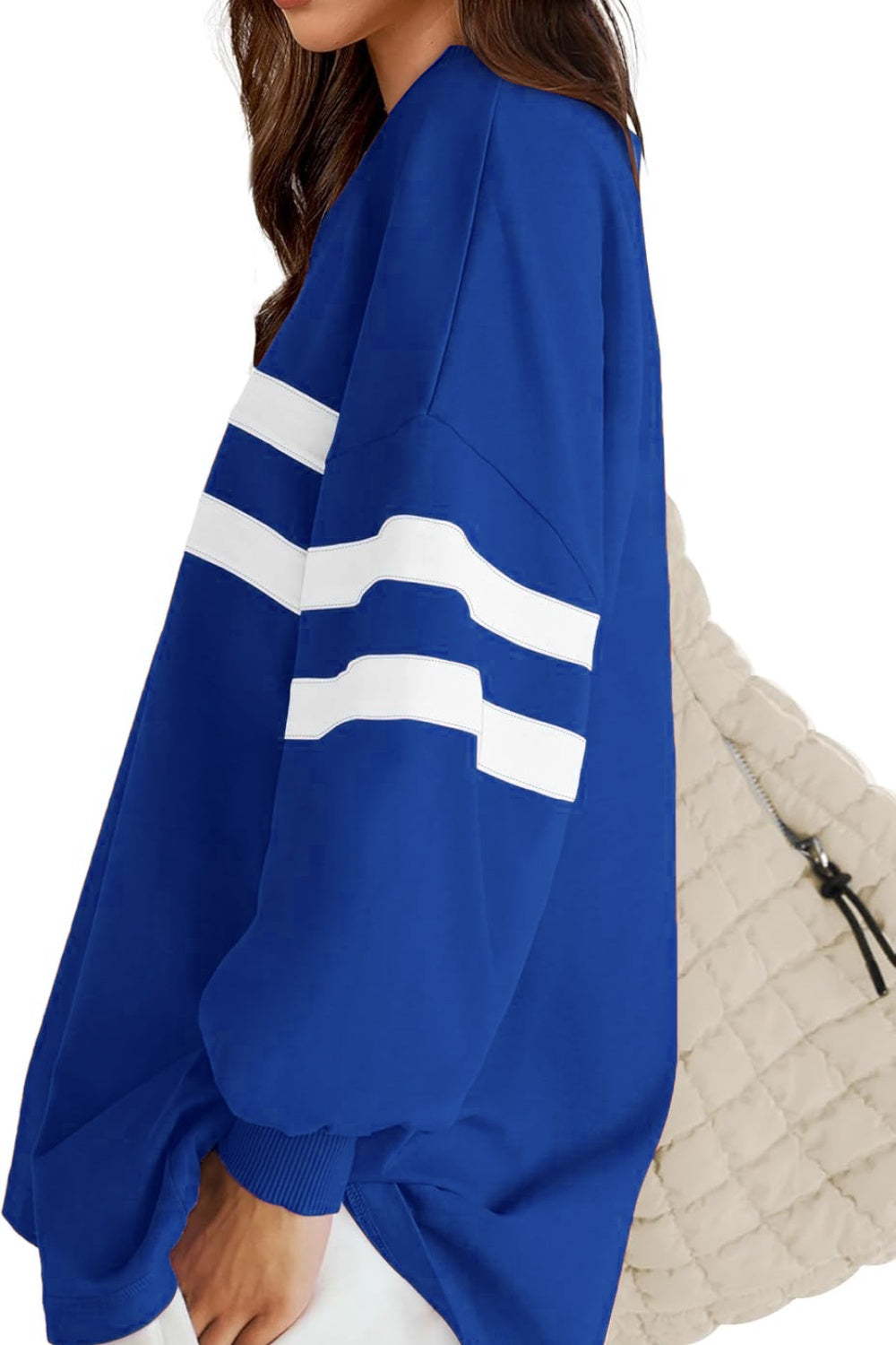 Striped Round Neck Dropped Shoulder Sweatshirt