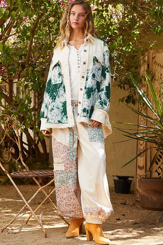 POL Jacquard Patch Collared Neck Quilted Jacket