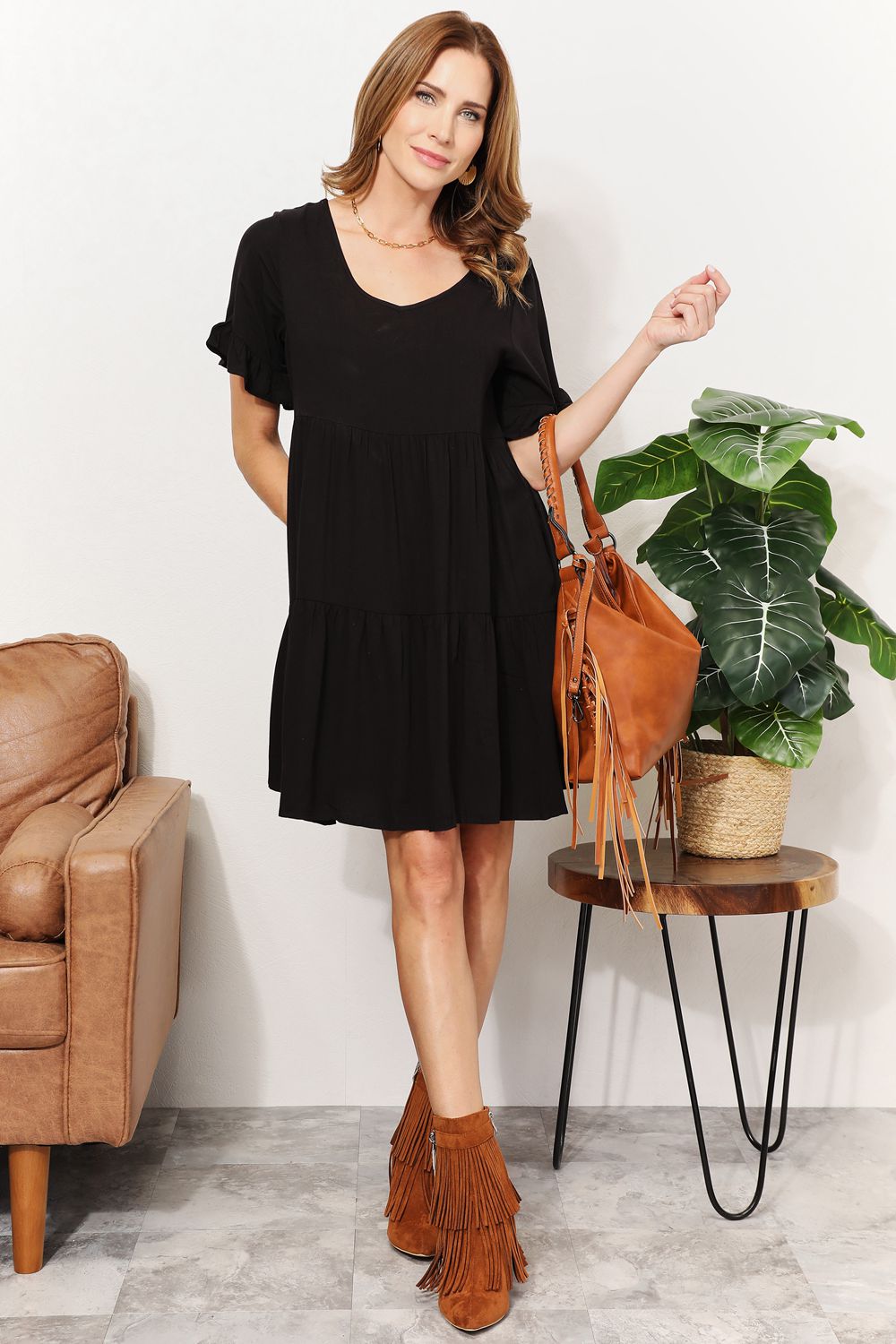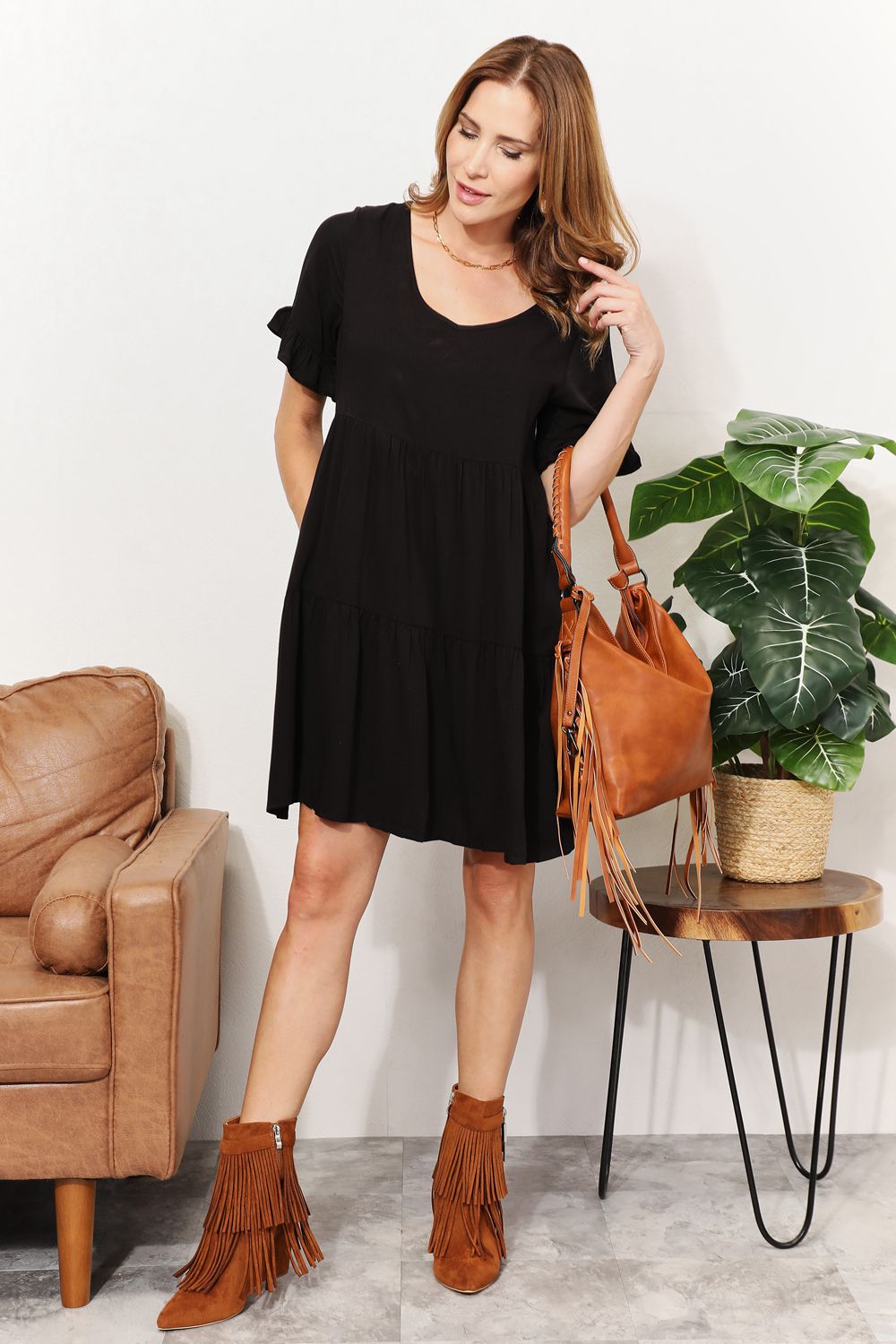 This medium-sized shoulder bag features a trendy fringe detail, adding a touch of bohemian flair to your outfit. Made of high-quality PU leather, it offers both style and durability for your everyday needs.